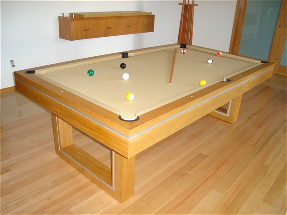 Possibilidade de lacagem em qualquer corInclui: 8 tacos + taqueira; 1 escova; 1 triângulo; 1 caixa com 6 cubos de giz; 1 jogo de bolas; 1 cobertura à cor escolhida; 1 pano à cor escolhida; Deslocação e montagem no local