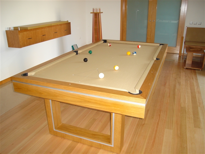Bilhar em Eucalipto com medida exterior 2,50 x 1,38 interior 2,20 X 1,10 Ardósia de 30 mm
